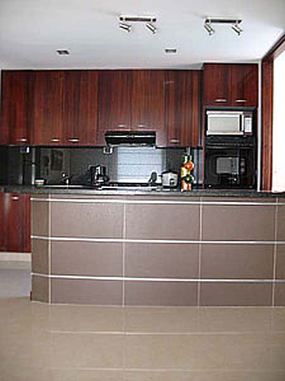 This large, nicely furnished, Medellin apartment, 100 sq meters, (almost 1,100 sq feet) also boasts spacious living and dining areas, fully equipped kitchen, outdoor balcony off the living room, and a separate laundry room. You will find upgraded marble tile flooring throughout and very modern kitchen cabinets with both electric and gas burners on the stove.