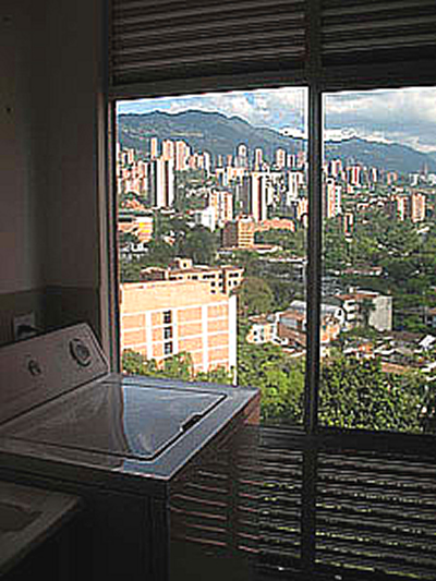 This modern two-bedroom/two bath Medellin apartment is on the 11th floor of a 12 floor new Medellin apartment building (built in 2007), providing spectacular views of the city and the mountains from every window, it is especially beautiful and romantic at night.